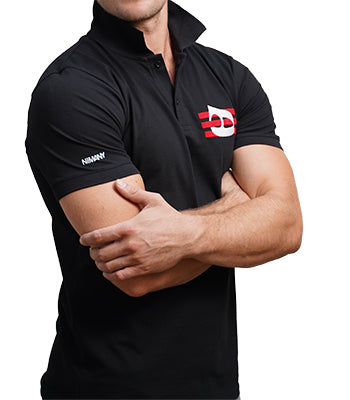 Limited Edition NIMANY Polo Shirt is every gentelman's must have. THR Polo comes in Black Body with Red and White Logo Embroidery.