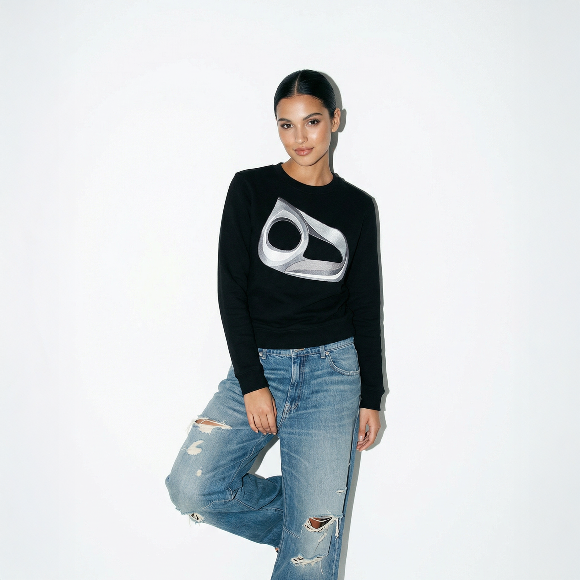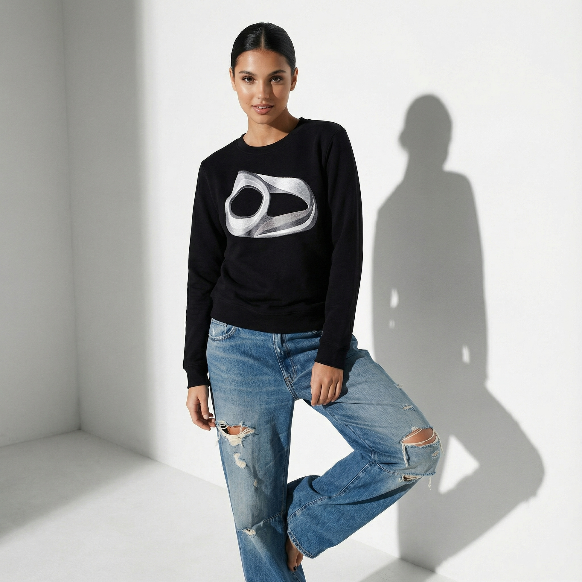 Ribbed reinforced cuffs, hem and crew neck.
