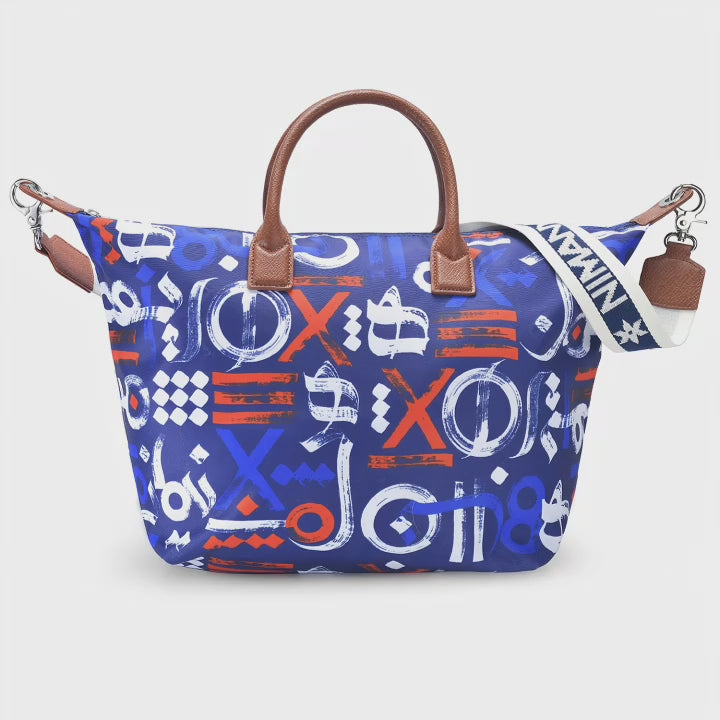 This NIMANY tote bag is a versatile and stylish everyday accessory, offering generous storage capacity and vibrant, on-trend colors. Designed with a guitar strap, it easily converts into a comfortable shoulder bag. The secure zipper closure ensures the safety of your belongings.