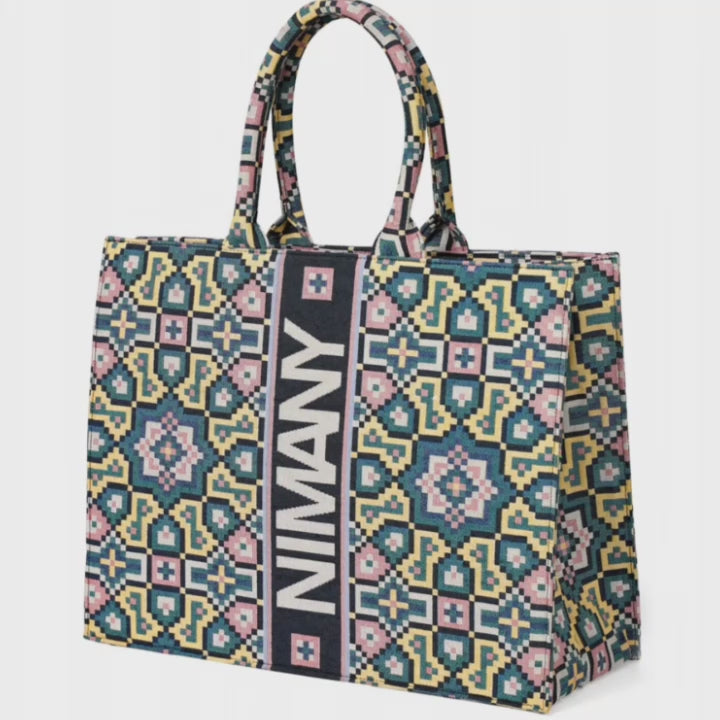Authentic multi thread multi color embroidered Tote. Each tote has been meticulously designed and embroidered keeping the artistic composition in mind. The Palace style showcases a range of colorful hues with an ancient Persian designed embroidery pattern. A removable sperate rigid panel inside the tote has been designed to keep the form and elegence of this tote intact.