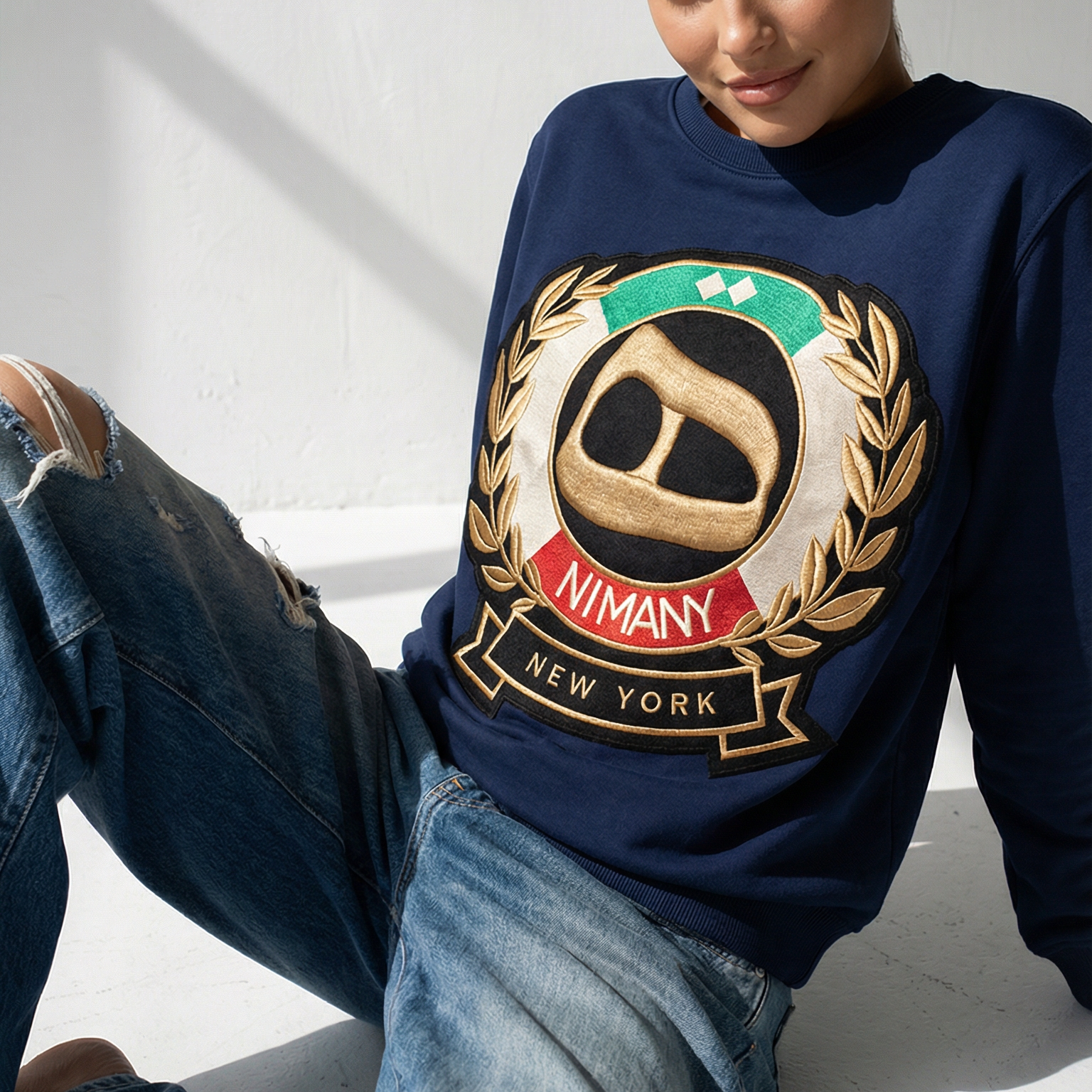 Limited Edition NIMANY VIP Club Sweaters is made from high quality cotton mix with oversized Appliqué and hand embroidered Raised logo.