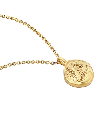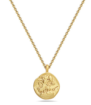 This necklace is a reproduction of the ancient Greek & Middle Eastern Zodiac Coins. The organic deformed shape was preserved to create the ancient look and feel.